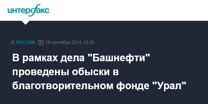Москва. 18 сентября. INTERFAX.RU - Правоохранительные органы провели обыски в благотворительном фонде "Урал" в Уфе в рамках расследования дела о незаконной продаже акций "Башнефти".