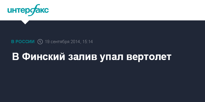 Москва. 19 сентября. INTERFAX.RU - В Финский залив упал вертолет, сообщает в пятницу пресс-служба ГУ МЧС по северной столице. По предварительным данным, погибших нет. Из воды спасен человек.