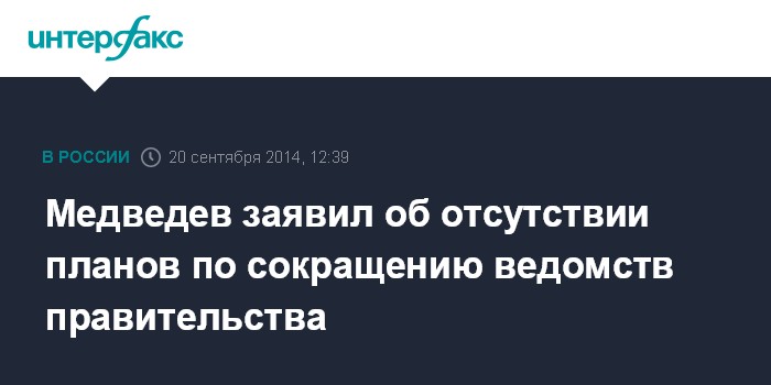 Отвечая на вопрос ведущего, продолжится ли тенденция к сокращению количества министерств и ведомств в связи с упразднением Минрегионразвития, Рособоронпоставки и Рособоронзаказа, Медведев подчеркнул: "На самом деле сокращения должны быть тоже разумными, а не ради сокращений. Вот мы пришли к выводу, что эти 3 ведомства не нужны. Я пришел к президенту. Он с этим согласился, их ликвидировали".