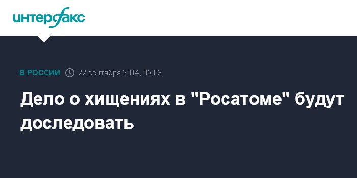 Москва. 22 сентября. INTERFAX.RU - Громкое дело о масштабных хищениях в госкорпорации "Росатом" передано для доследования в главное следственное управление (ГСУ) столичного главка МВД, пишет газета "Коммерсант" в понедельник.