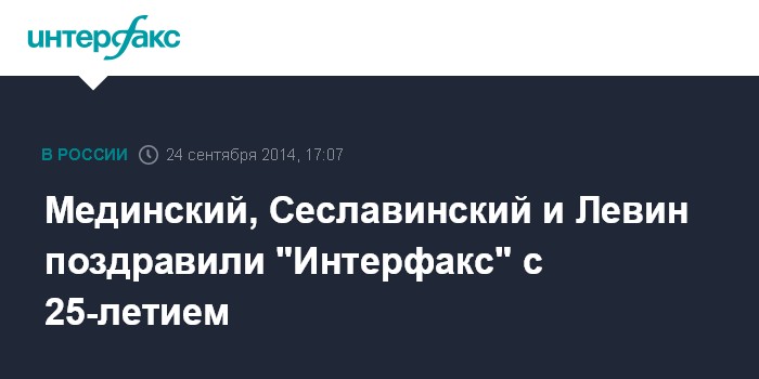 Мединский, Сеславинский и Левин поздравили "Интерфакс" с 25-летием