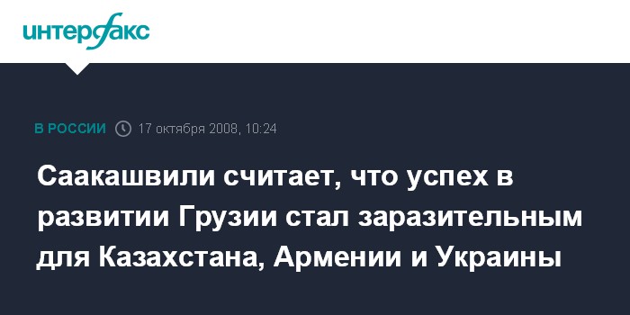 "Наш пример стал заразительным: Казахстан, Украина, Армения, другие страны увидели, что можно развиваться по другому пути, нежели Россия, и это стало причиной нападения на Грузию", - заявил президент в четверг вечером на встрече со студентами в Тбилисском государственном университете имени Ивана Джавахишвили.