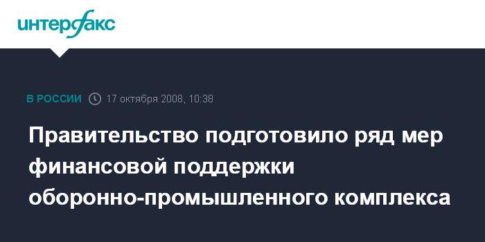 Москва. 17 октября. INTERFAX.RU - Рабочая группа правительства подготовила предложения по усилению кредитования предприятий оборонно-промышленного комплекса (ОПК), сообщил вице-премьер Сергей Иванов.