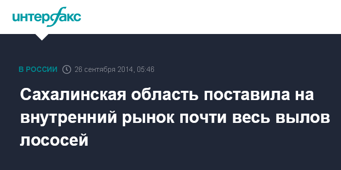 Москва. 26 сентября. INTERFAX.RU - Сахалинские рыбаки на сегодняшний день выловили 108 тыс. тонн тихоокеанских лососей из которых только 1,6 тыс. тонн поставлены на экспорт, все остальное - на внутренний рынок, сообщил журналистам в пятницу руководитель агентства по рыболовству Павел Колотушкин.