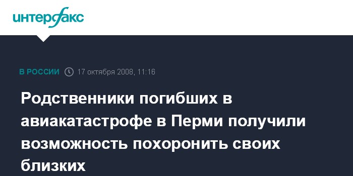 Москва. 17 октября. INTERFAX.RU - В Перми в пятницу началась выдача родственникам для захоронения останков погибших в сентябрьской авиакатастрофе, сообщил заместитель председателя правительства Пермского края Анатолий Зубарев.