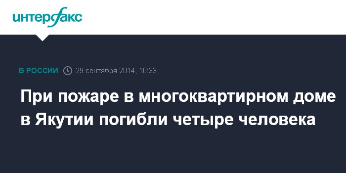 При пожаре в многоквартирном доме в Якутии погибли четыре человека
