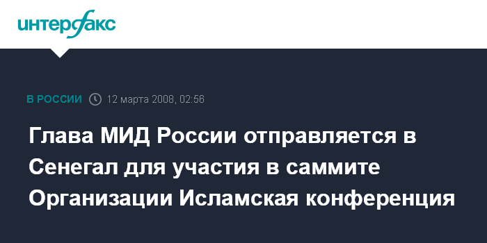 Ранее официальный представитель российского внешнеполитического ведомства Михаил Камынин сообщил, что С.Лавров примет участие в саммите Организации Исламская конференция (ОИК), который пройдет в Дакаре 13-14 марта.