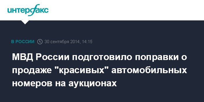 Москва. 30 сентября. INTERFAX.RU - МВД России выступило инициатором поправок в порядок регистрации автотранспорта, которые позволят автовладельцам приобретать "красивые" номера исключительно на специальных аукционах, а не у коррумпированных сотрудников ГИБДД.
