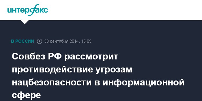 Совбез РФ рассмотрит противодействие угрозам нацбезопасности в информационной сфере