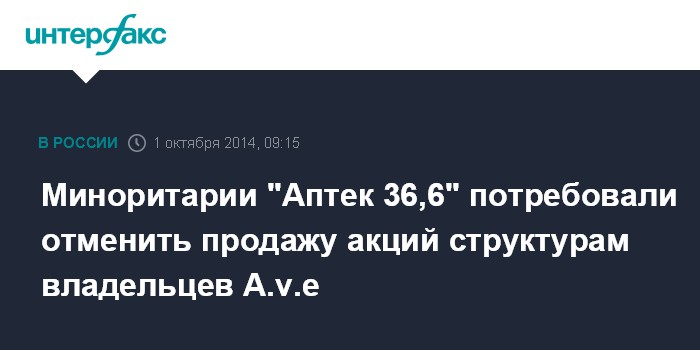Миноритарии "Аптек 36,6" потребовали отменить продажу акций структурам владельцев A.v.e