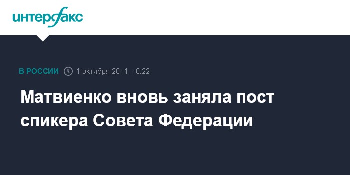 Матвиенко вновь заняла пост спикера Совета Федерации