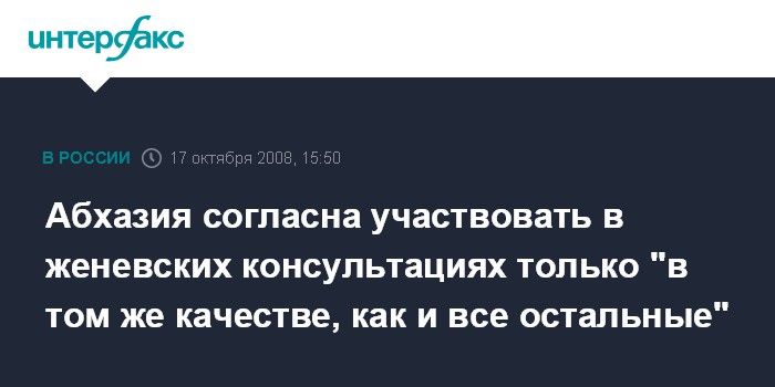 Абхазия согласна участвовать в женевских консультациях только "в том же качестве, как и все остальные"
