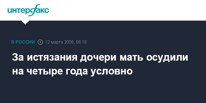 Южно-Сахалинск. 12 марта. INTERFAX.RU - Тымовский районный суд приговорил 31-летнюю жительницу поселка Тымовское Сахалинской области за жестокость и издевательства в отношении малолетней дочери к четырем годам лишения свободы условно с испытательным сроком. Кроме того, подсудимая должна будет выплатить штраф в размере трех тысяч руб.