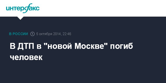 Москва. 5 октября. INTERFAX.RU - Один человек погиб в результате ДТП в "новой Москве". Об этом "Интерфаксу" сообщили в пресс-службе управления ГИБДД столицы.