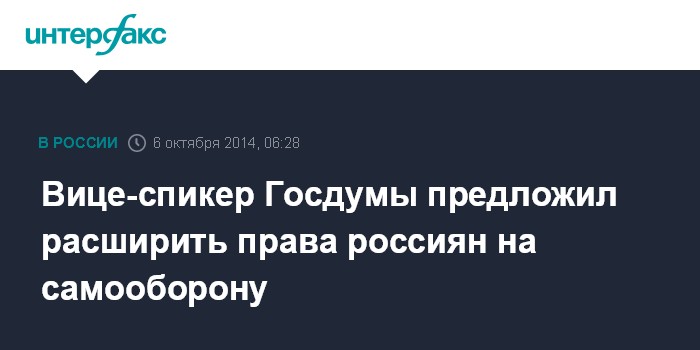 Вице-спикер Госдумы предложил расширить права россиян на самооборону