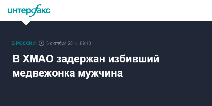 Москва. 6 октября. INTERFAX.RU - Сотрудники полиции Ханты-Мансийска задержали мужчину, ударившего медвежонка металлической трубой, сообщает пресс-служба УМВД по ХМАО.