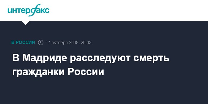 Москва. 17 октября. INTERFAX.RU - Национальная полиция Испании приступила к расследованию причин смерти 34-летней гражданки России Наталии Сульженко, которая была обнаружена с 20 ножевыми ранениями в четверг в ее квартире в одном из районов Мадрида, пишет в пятницу испанская газета Pais.