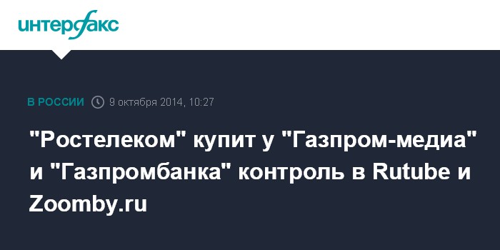 В настоящее время Rutube и Now.ru принадлежат "Газпром-медиа", а Zoomby.ru - Газпромбанку. Перед сделкой с "Ростелекомом" Zoomby также перейдет под контроль "Газпром-медиа".