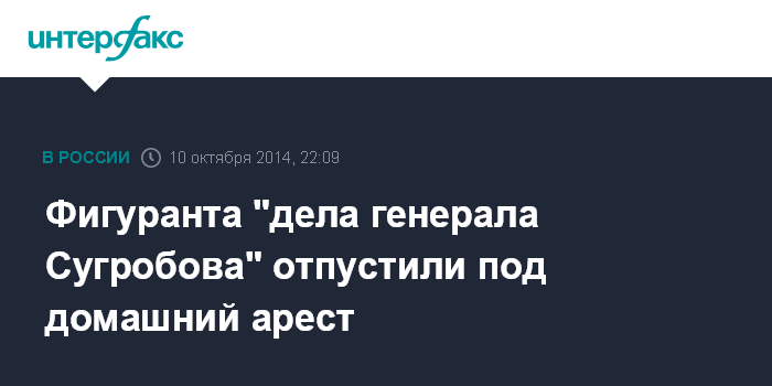 Фигуранта "дела генерала Сугробова" отпустили под домашний арест