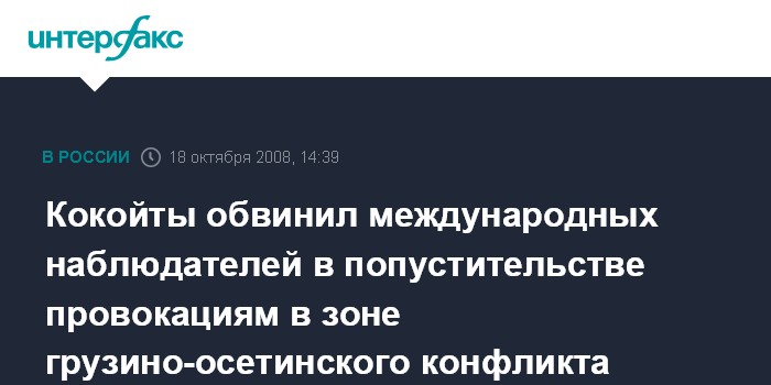 Москва. 18 октября. INTERFAX.RU - Президент Южной Осетии Эдуард Кокойты выразил недоумение по поводу того, что находящиеся в регионе международные наблюдатели не реагируют на провокационные действия грузинской стороны.