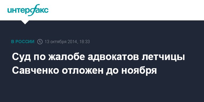 Москва. 13 октября. INTERFAX.RU - Басманный суд Москвы перенес на 11 ноября заседание по жалобе защиты украинской летчицы Надежды Савченко на назначение психиатрической экспертизы.