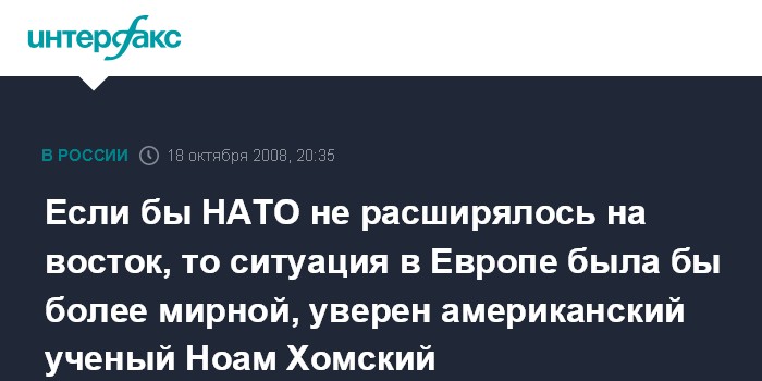 Если бы НАТО не расширялось на восток, то ситуация в Европе была бы более мирной, уверен американский ученый Ноам Хомский