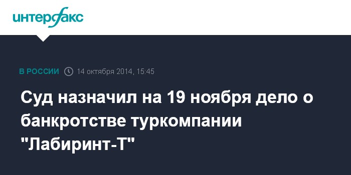 Суд назначил на 19 ноября дело о банкротстве туркомпании "Лабиринт-Т"
