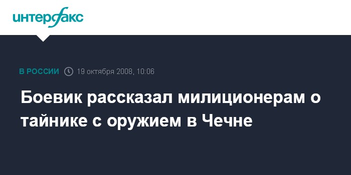 Москва. 19 октября. INTERFAX.RU - Сотрудники чеченской милиции задержали в райцентре Ачхой-Мартан участника незаконных вооруженных формирований, который помог обнаружить тайник с оружием.