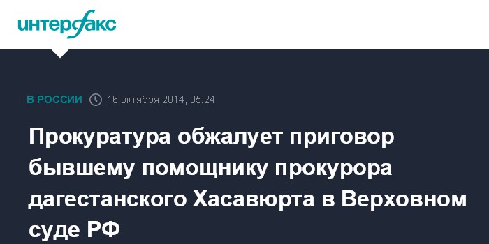 Прокуратура обжалует приговор бывшему помощнику прокурора дагестанского Хасавюрта в Верховном суде РФ