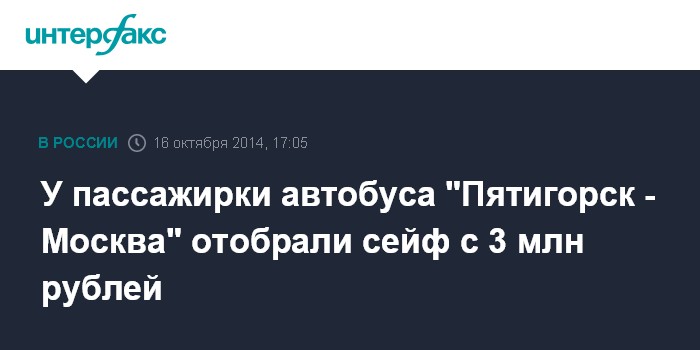 У пассажирки автобуса "Пятигорск - Москва" отобрали сейф с 3 млн рублей