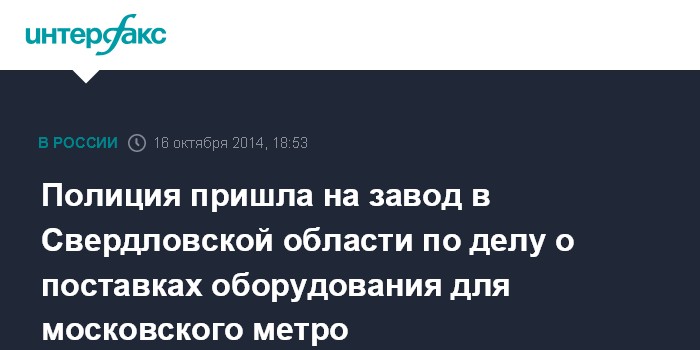 Полиция пришла на завод в Свердловской области по делу о поставках оборудования для московского метро