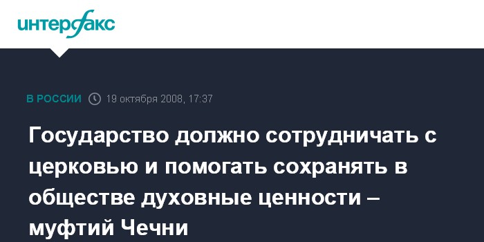 Государство должно сотрудничать с церковью и помогать сохранять в обществе духовные ценности – муфтий Чечни