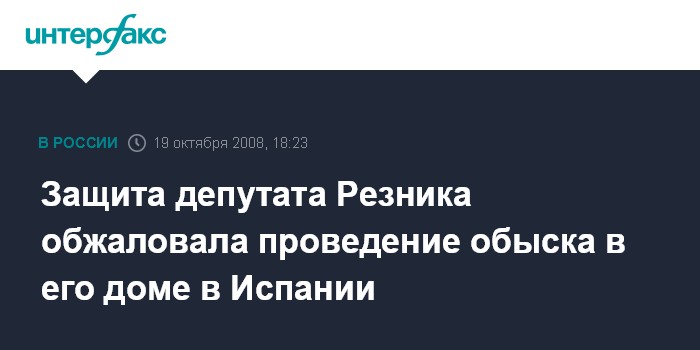 Ранее радиостанция "Эхо Москвы" сообщила со ссылкой на агентство Франс Пресс и газету El Pais, что испанская полиция провела рейд в доме В.Резника, в ходе которого были изъяты компьютеры, портативные телефоны и предметы искусства. Как рассказала "Эху Москвы" корреспондент "El Pais" Пиллар Бонет, следственные мероприятия проводились в рамках расследования дела в отношении тамбовской преступной группировки. Летом прошлого года по этому делу были задержаны 18 человек.