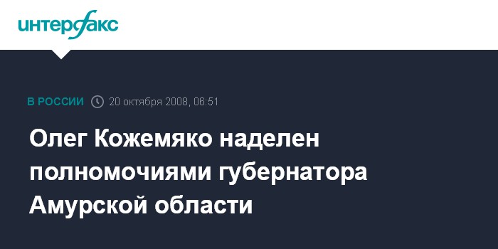 Благовещенск. 20 октября. ИНТЕРФАКС - ДАЛЬНИЙ ВОСТОК - Депутаты Законодательного собрания Амурской области на внеочередном заседании наделили полномочиями губернатора Олега Кожемяко, кандидатуру которого в областной парламент внес президент РФ.