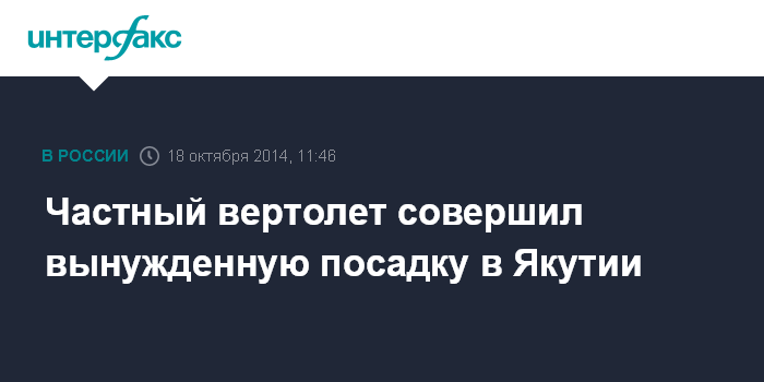 Частный вертолет совершил вынужденную посадку в Якутии