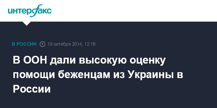 Москва. 18 октября. INTERFAX.RU - Управление верховного комиссара ООН по делам беженцев (УВКБ) дало высокую оценку мерам, которые российские власти принимают для помощи беженцам с Украины.