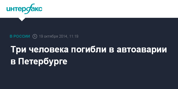 Москва. 19 октября. INTERFAX.RU - Две машины столкнулись в Красногвардейском районе Петербурга, погибли три человека, сообщили "Интерфаксу" в региональном управлении ГИБДД.