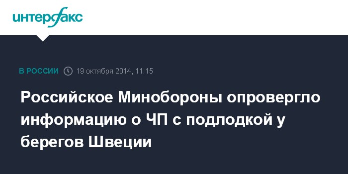 Москва. 19 октября. INTERFAX.RU - Министерство обороны России опровергает информацию западных СМИ о возможном инциденте с российской подлодкой.