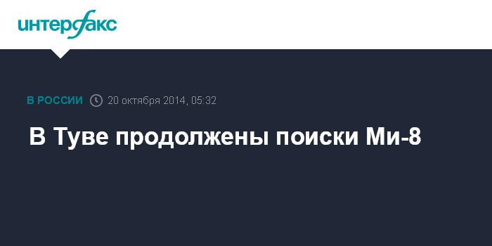 Москва. 20 октября. INTERFAX.RU - В Туве продолжаются поиски экипажа и пассажиров пропавшего 7 октября вертолета Ми-8 компании "Тываавиа", сообщает пресс-служба Сибирского регионального центра МЧС.