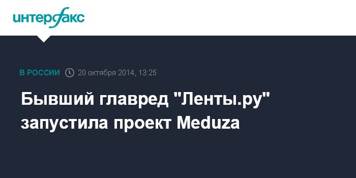 Москва. 20 октября. INTERFAX.RU - Бывший главный редактор интернет-издания "Лента.ру" Галина Тимченко запустила новый проект под названием "Медуза" (Meduza).