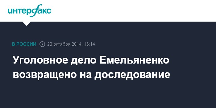 Москва. 20 октября. INTERFAX.RU - Прокуратура вернула на доследование уголовное дело в отношении бойца смешанных единоборств Александра Емельяненко, обвиняемого по делу об изнасиловании, сообщил в понедельник адвокат Александр Карабанов.