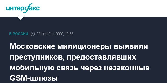 Москва. 20 октября. INTERFAX.RU – Правоохранительные органы пресекли в Москве деятельность преступной группы, которая предоставляла услуги пользователям МТС через несанкционированные GSM-шлюзы, сообщили "Интерфаксу" в пресс-службе департамента экономической безопасности (ДЭБ) МВД РФ.