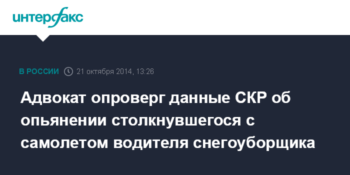 Адвокат опроверг данные СКР об опьянении столкнувшегося с самолетом водителя снегоуборщика