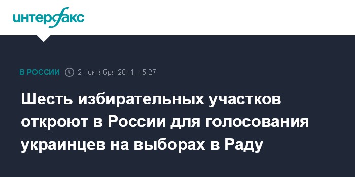 Москва. 21 октября. INTERFAX.RU - Шесть избирательных участков будут открыты в России для голосования украинцев на внеочередных парламентских выборах, сообщил "Интерфаксу" во вторник председатель избиркома при посольстве Украины в России Виктор Гержов.