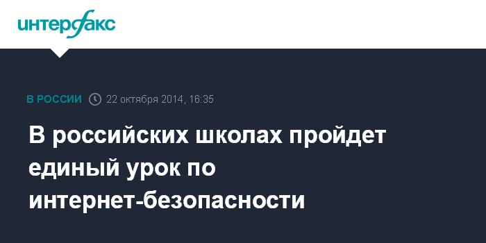 "С 27 по 30 октября по всех российских школах пройдет Единый урок по безопасности в сети Интернет: ученикам расскажут об основных видах киберугроз, способах их распространения и методах борьбы", - говорится в сообщении, поступившем в "Интерфакс" в среду.