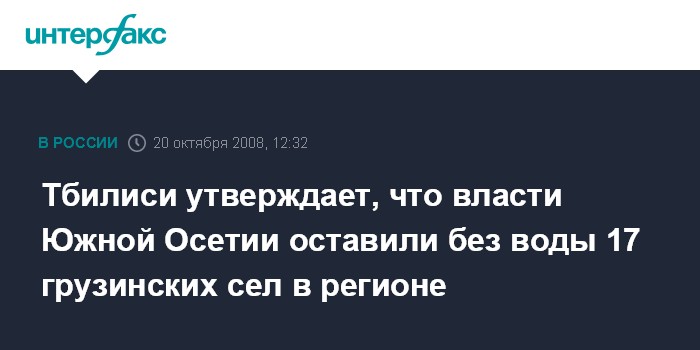 Москва. 20 октября. INTERFAX.RU – Власти Южной Осетии в минувшие выходные перекрыли водовод, снабжавший 17 грузинских сел в Цхинвальском регионе питьевой водой.
