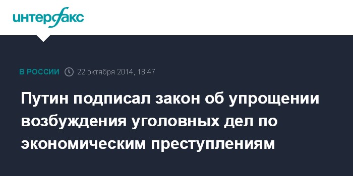 Путин подписал закон об упрощении возбуждения уголовных дел по экономическим преступлениям