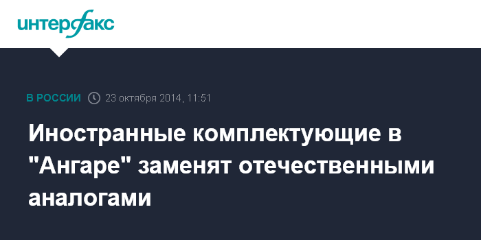Москва. 23 октября. INTERFAX.RU - В новой российской ракете-носителе "Ангара" используется ряд элементов иностранного производства, но космический центр имени Хруничева ведет работы по их замене отечественными аналогами, сообщил на пресс-конференции в центральном офисе агентства "Интерфакс" в Москве в четверг замгендиректора космического центра - генконструктор КБ "Салют" Юрий Бахвалов.