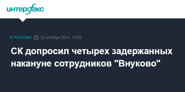 Москва. 23 октября. INTERFAX.RU - Все четверо работников аэропорта "Внуково", задержанные накануне в рамках расследования катастрофы французского самолета, допрошены в качестве подозреваемых, сообщил официальный представитель СК РФ Владимир Маркин.