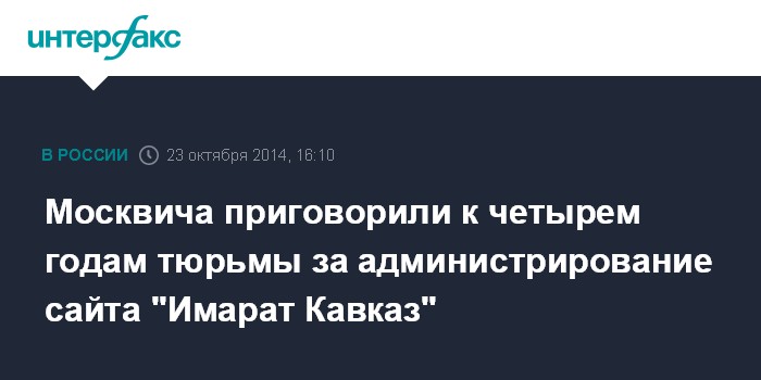 Москвича приговорили к четырем годам тюрьмы за администрирование сайта "Имарат Кавказ"